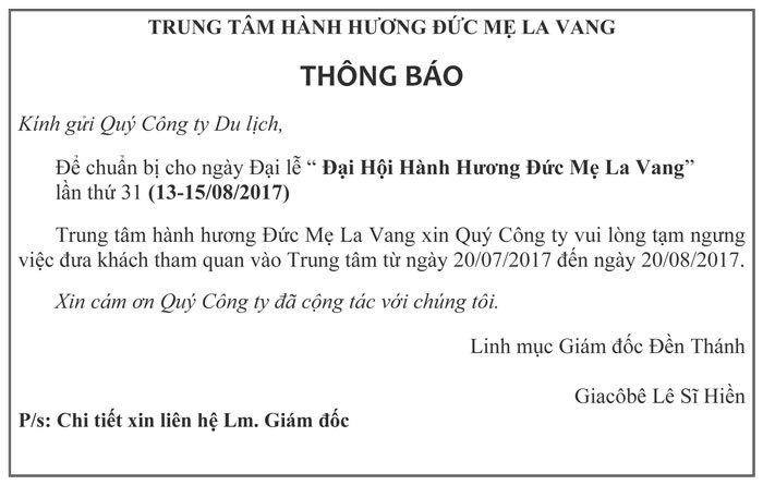 Read moreTrung Tâm Hành Hương Đức Mẹ La Vang THÔNG BÁO THÁNH LỄ ĐẦU THÁNG 2 NĂM 2018